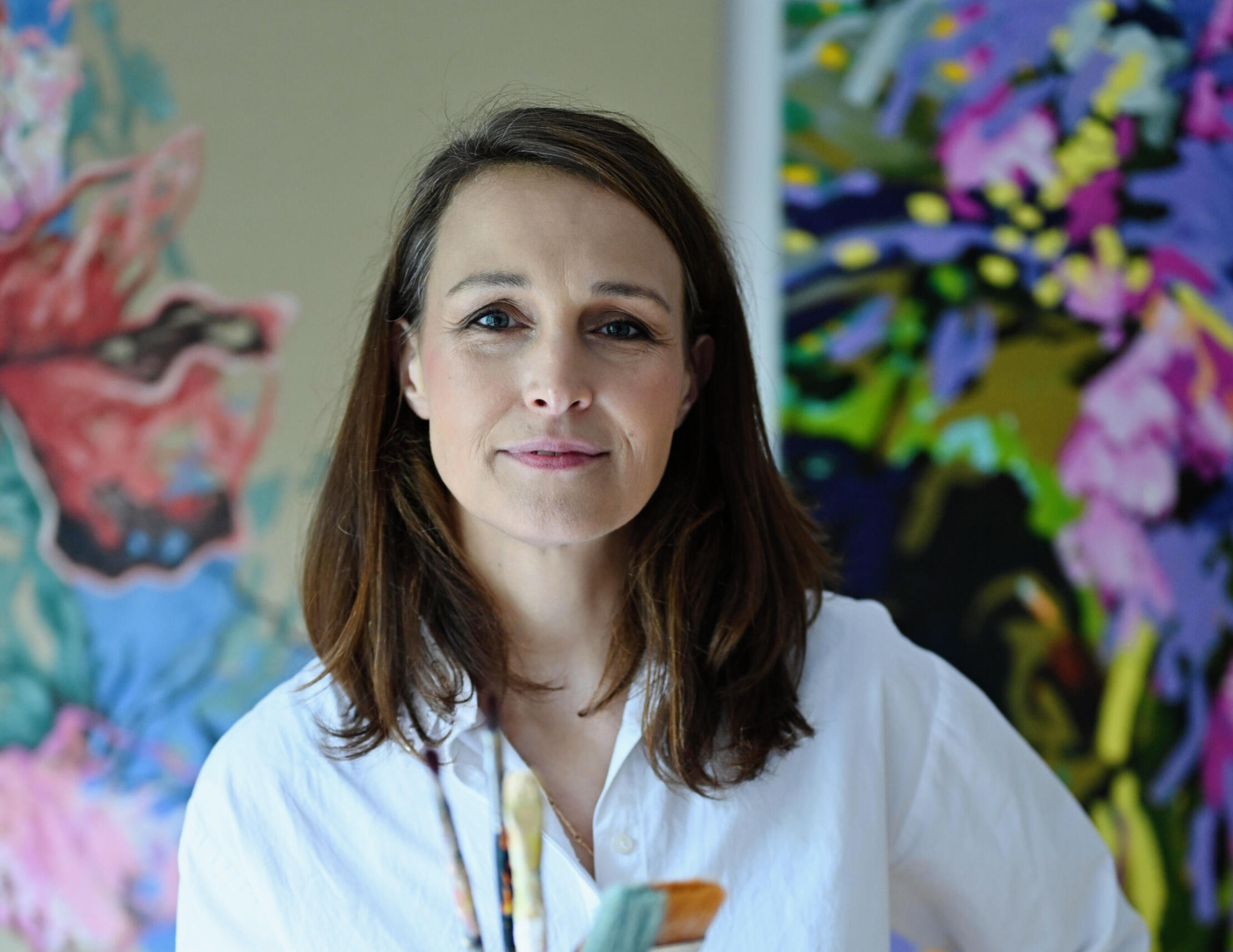 Anja Falk is a German artist based in Delhi, whose nature-inspired abstract paintings explore belonging, movement, and emotion through bold color and organic flow.
