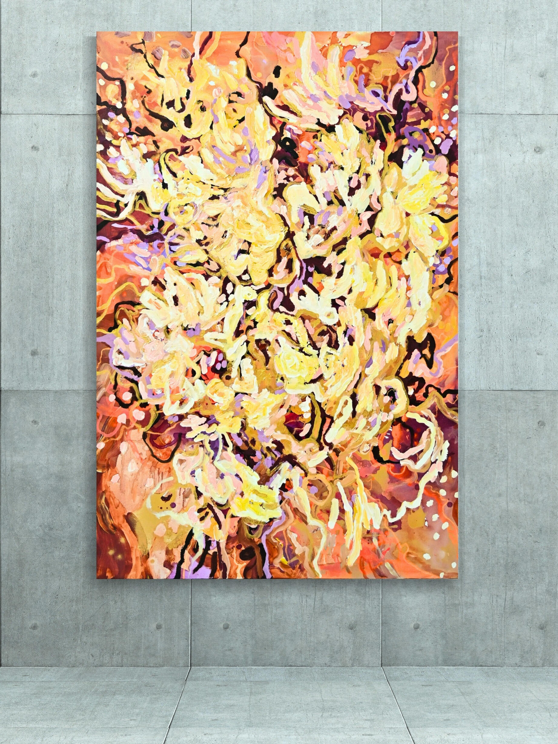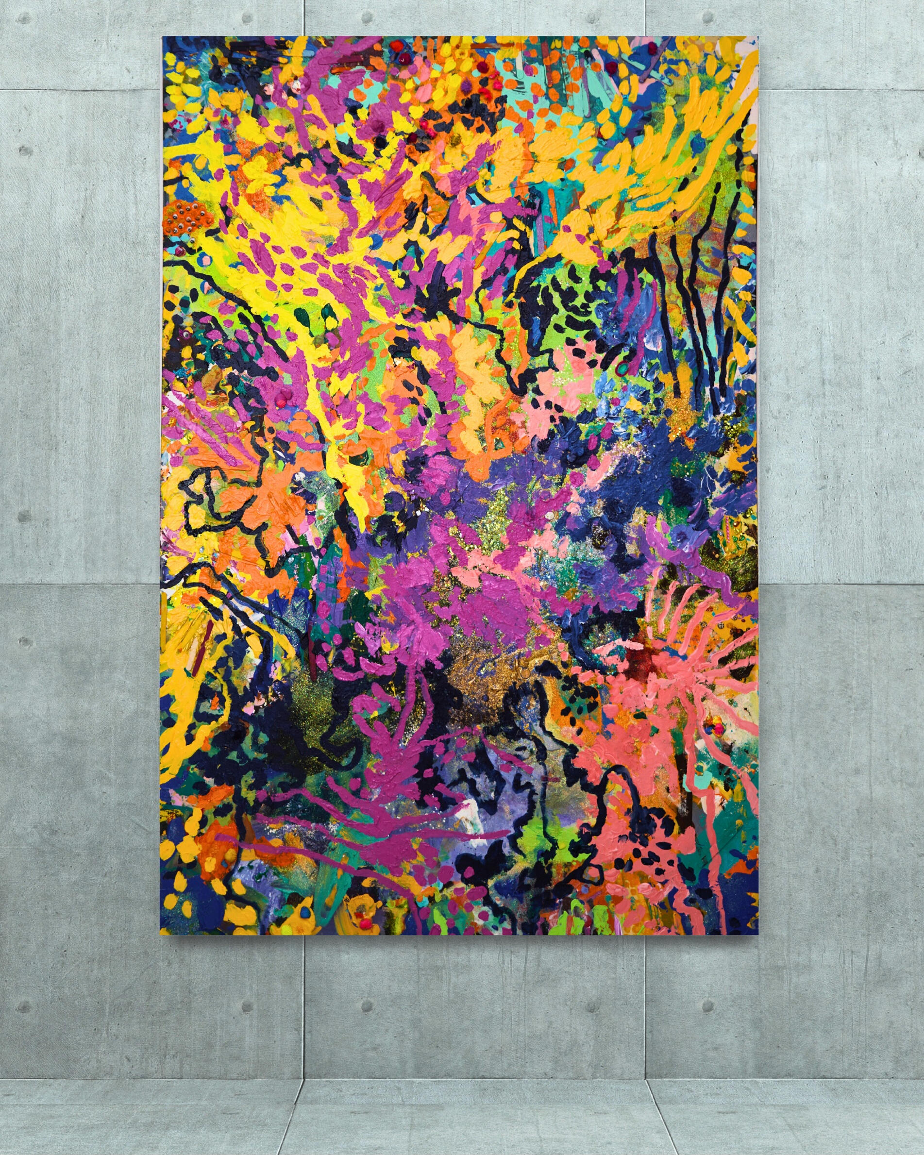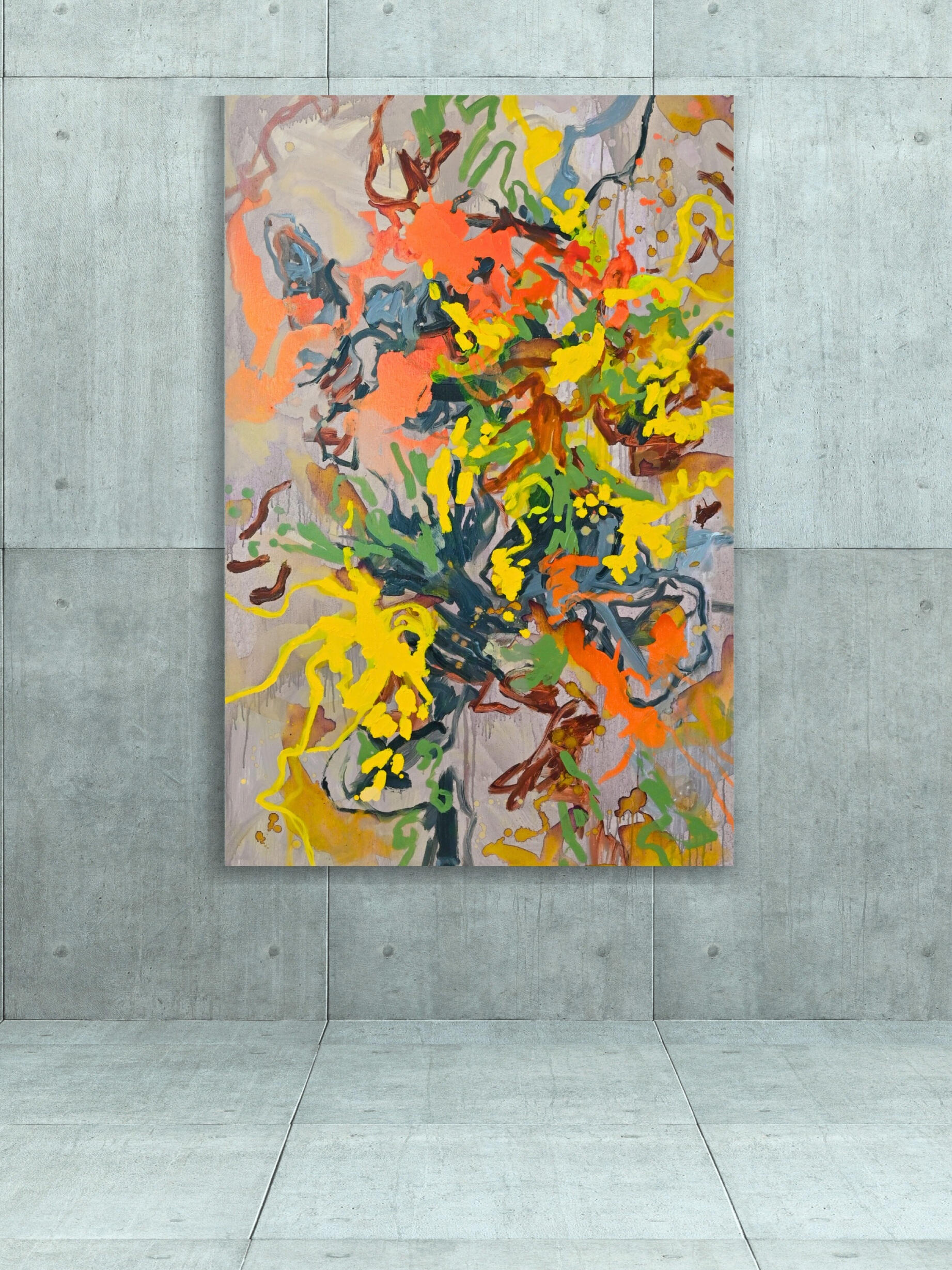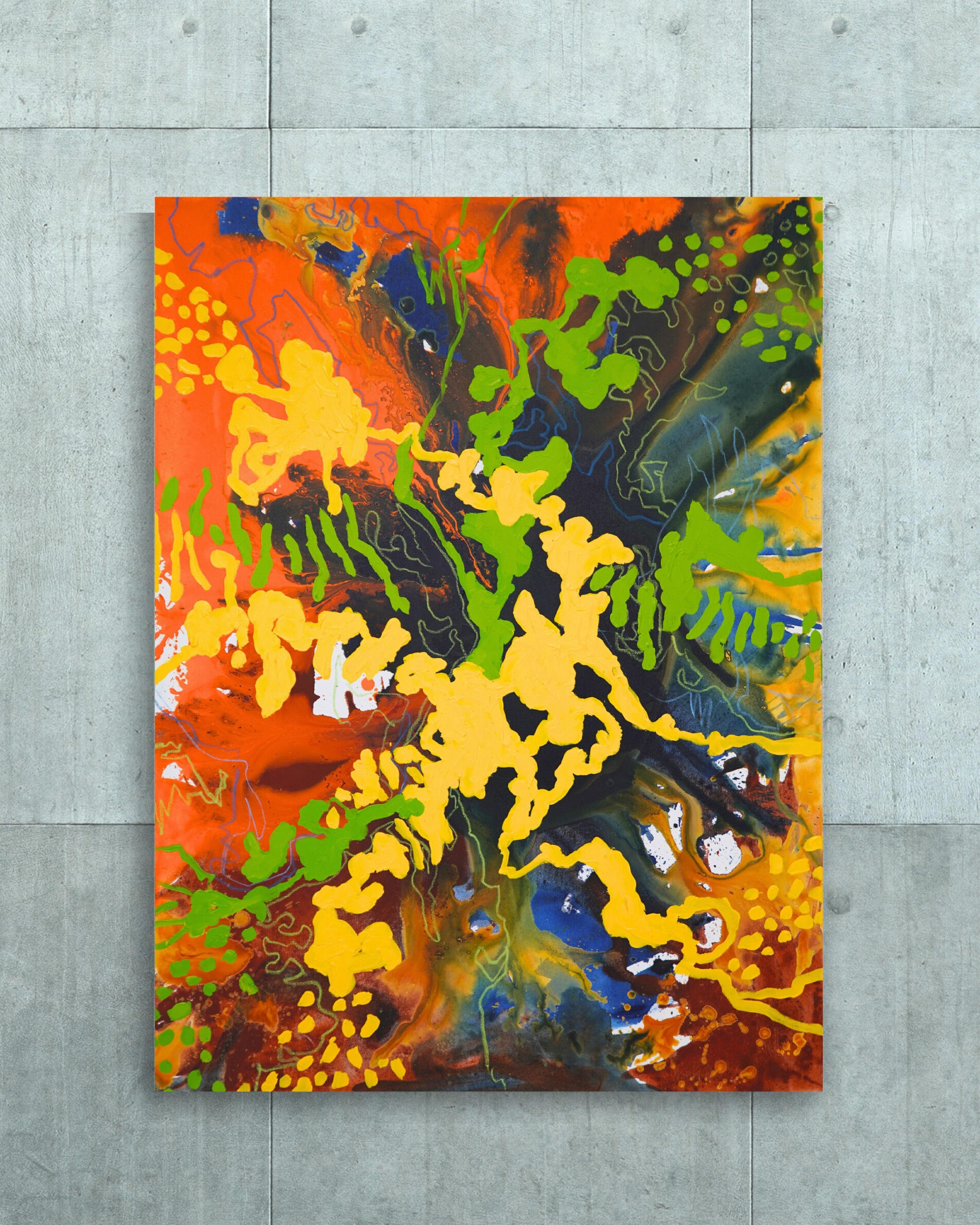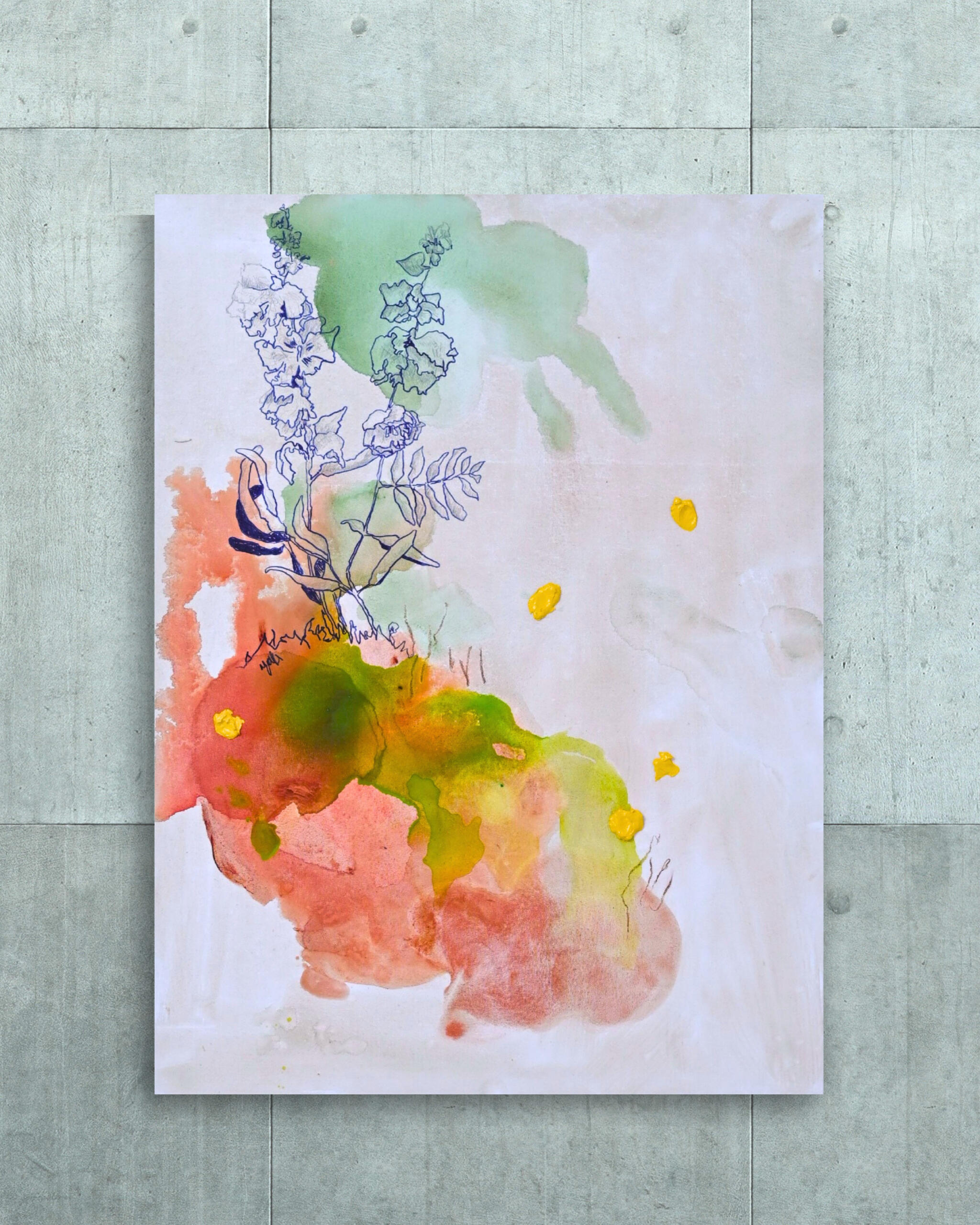 Anja Falk is a German artist based in Delhi, whose nature-inspired abstract paintings explore belonging, movement, and emotion through bold color and organic flow.